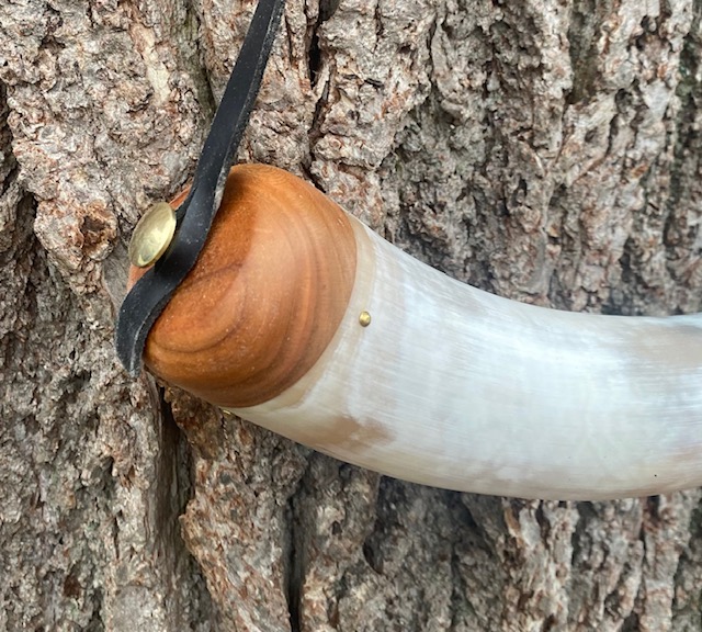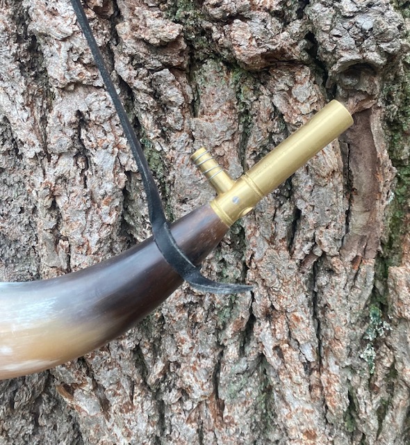This is the same horn as our Standard Powder Horn. However, a solid brass push button valve is installed in a brass bushing in the tip. Although we do supply this style horn with a 100 grain powder measure, we strongly recommend never using it to pour directly into the barrel of a freshly fired rifle. The standard finish is polished. This horn will typically range in length from 10 1/2″ to 14″ on the bottom curve.