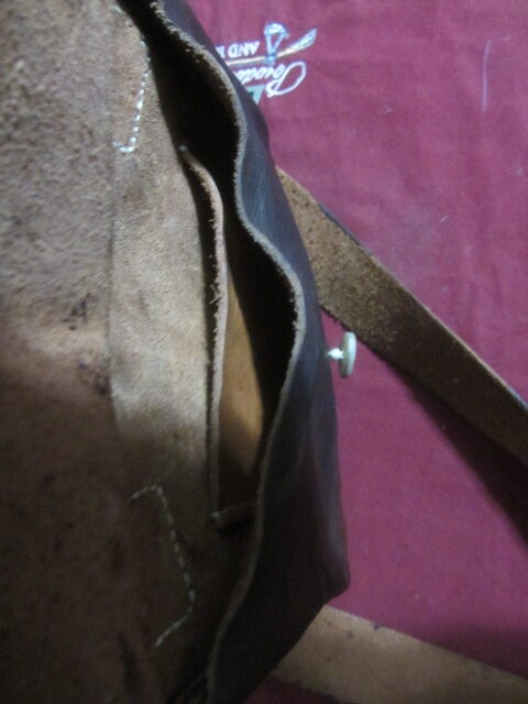What a great and simple bag! 7 x 7 with one inner pockets and one small pocket, horn button closure. This is a very period correct bag as they were not huge back in the day. They had a purpose and were not designed to carry “everything possible”. David really knows what he is doing!