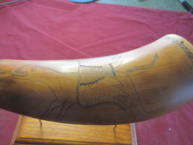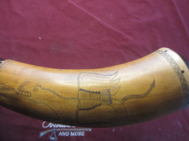This is a beautiful horn made by Lance Guldin! Engraving of Crown Point on one side and a griffin on the other, from an original.