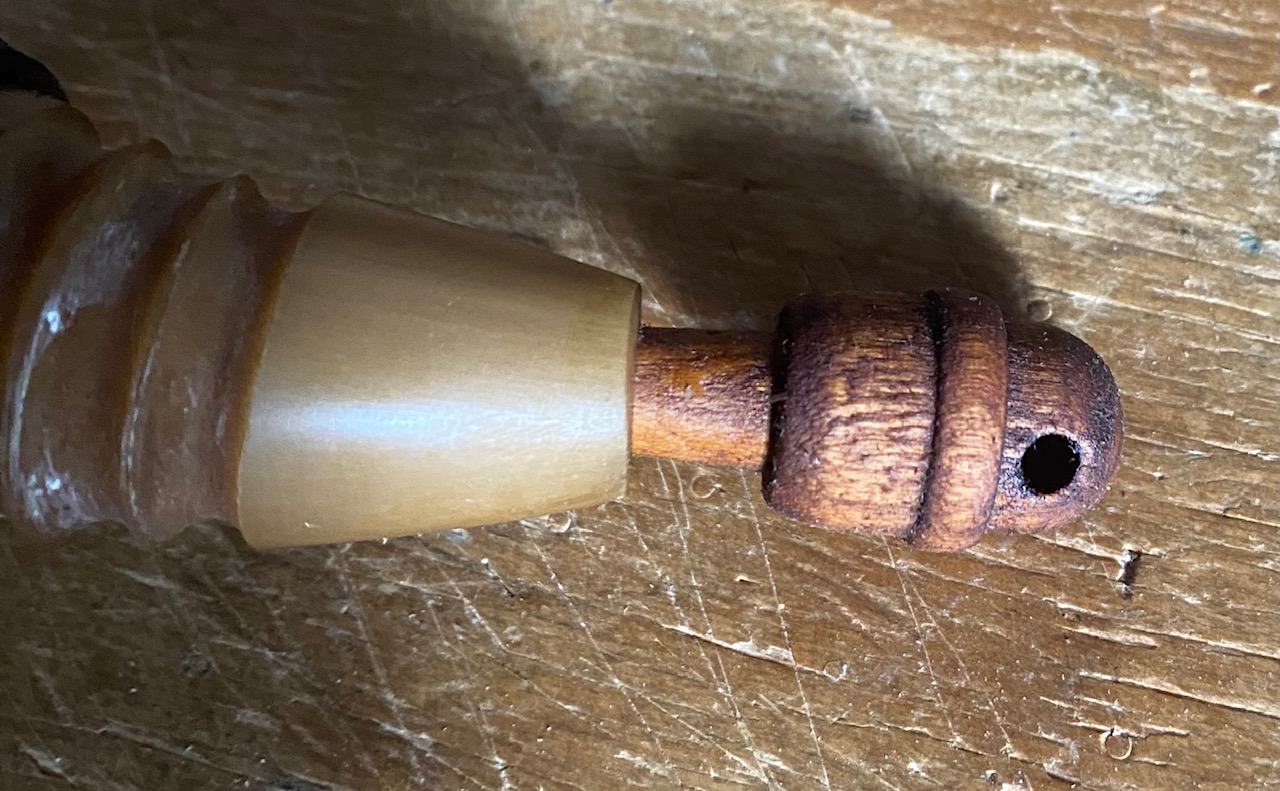 This semi-finished acorn shaped plug will still need to have the shaft sanded down to fit your horn! Add this to any Powder Horn and I will make sure it fits properly. Additionally, I added a hole for a thong to tie it off so you don’t lose it in the woods. I use the same wood as your base plug so it will match.