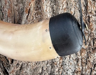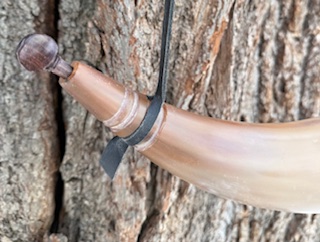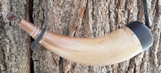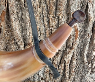 This RIGHT side carry is translucent like the originals where you can hold it up to the sun and see how much powder it has in it. It should;d hold a pound of powder making it great for long treks, which I like, or prolonged shooting at the range. Want to carry a bunch for your fowler? This is the horn you need especially if you are going to squirrel or bird hunt with it.